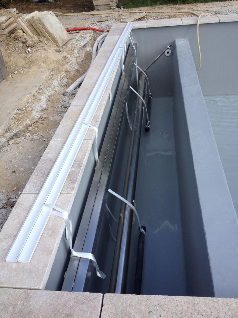 Piscine 9mx3m membrane armé 150/100e gris foncé margelles et...