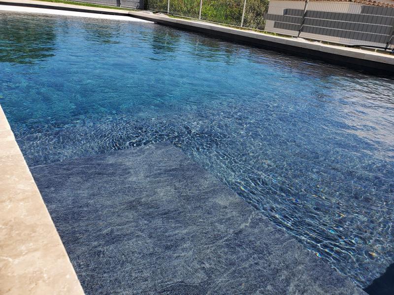 Piscine de 10mx5m se situant à Vinon sur Verdon Membrane armé 200/100e Alkor Touch Élégance, le modernisme et la pureté de l'ardoise.